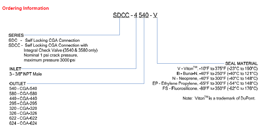 The Series SDC connection system is supplied for installation into the outlet ports of  most gas use, vent and fill valves on a cryogenic liquid cylinder. The system is a onepiece